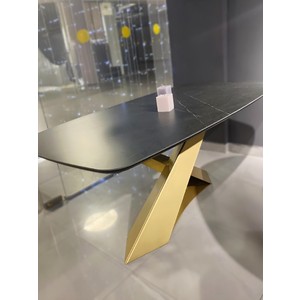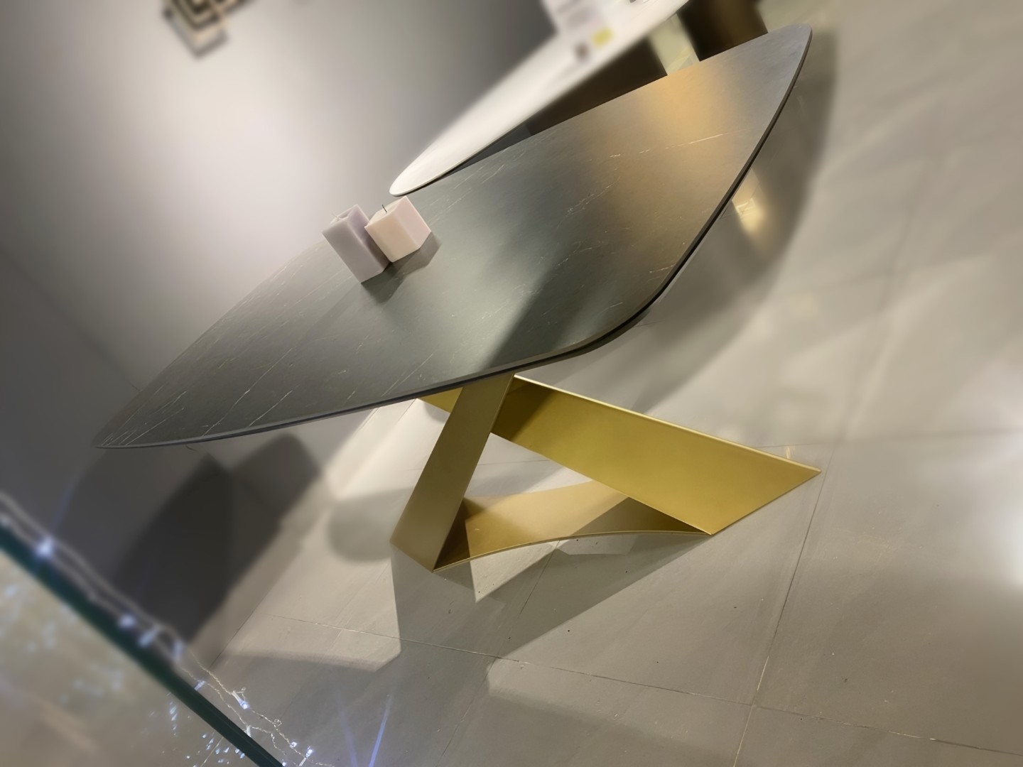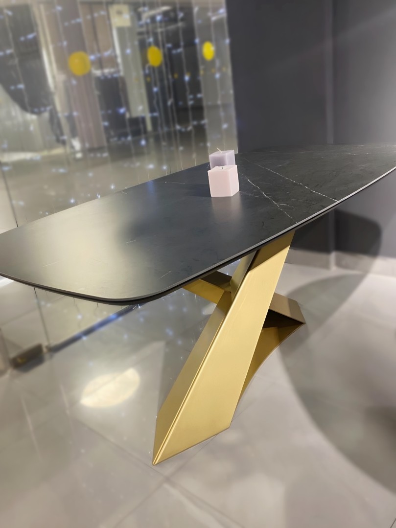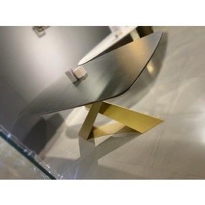 Дизайнерский стол CHAMELEON на подиуме явлется измененной версией стола CHAMELEON. Данная модель представляет собой стол с двумя наклонными ножками, расположенными асимметрично внахлест из металла, которые соединяются снизу фигурной пластиной. За счет строгих и четких линий, правильной геометрии он не будет загромождать пространство. Стол «CHAMELEON» станет настоящей изюминкой вашего интерьера, добавит нотку стиля в вашу гостиную.