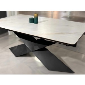 Основание - эффектное металлическое подстолье X-образной формы, придает стабильность и выразительный акцент в интерьере. Цвет подстолья - матовый черный.