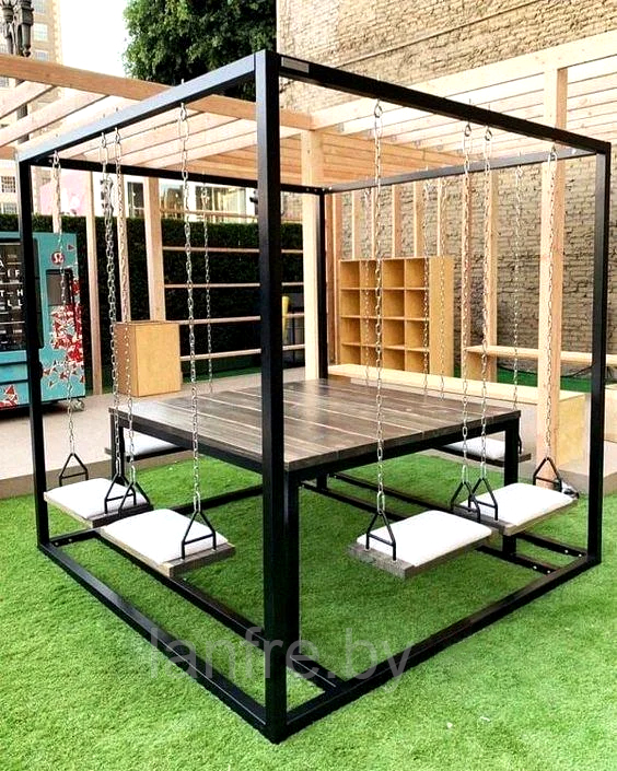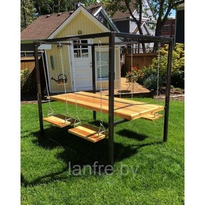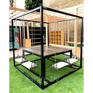 Беседка Лофт станет любимым местом для комфортного отдыха на даче, поможет отдохнуть и расслабиться взрослым, а также станет любимой забавой и местом для принятия пищи для детей. Каркас изготовлен из прочной проф. трубы, что позволяет качелям выдерживать нагрузку в 150 кг.