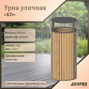 Урна КД – современная городская урна для мусора. Она прекрасно подходит к любым типам наших скамеек. Урна выполнена из металла с полимерным покрытием. Деревянные вставки - сосна.