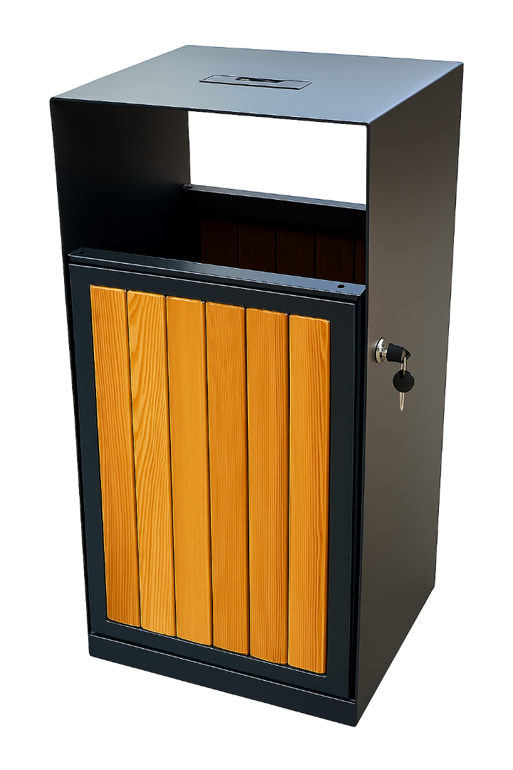 Урна EcoGran – современная городская урна для мусора с дверцей. Устойчивая, надёжая конструкция и стильный дизайн - главные преимущества представленной модели. Она отлично подходит к любым типам наших скамеек. Урна выполнена из металла с полимерным покрытием. Деревянные вставки - сосна. Объем урна 48 л. Вкладыш из оцинкованной стали в комплекте.