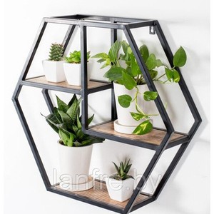 Полка настенная MIRA - декоративная полка в стиле лофт. Состоит из металлической конструкции и трех деревянных полок. Впишется в любой современный интерьер.