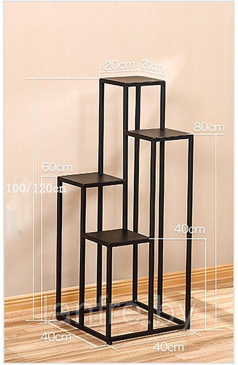 Подставка для цветов напольная ORA - декоративная полка в стиле лофт. Состоит из металлической конструкции и четырех деревянных полок. Впишется в любой современный интерьер.