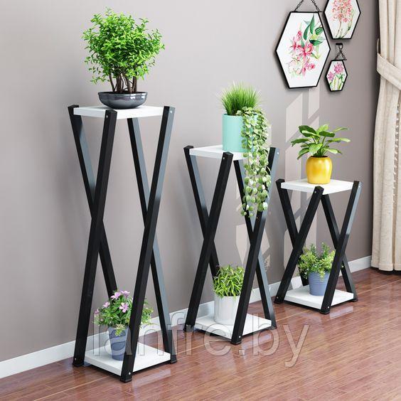 Подставка для цветов напольная ZIG-2 - декоративная полка в стиле лофт. Состоит из металлической конструкции и двух деревянных полок. Впишется в любой современный интерьер.