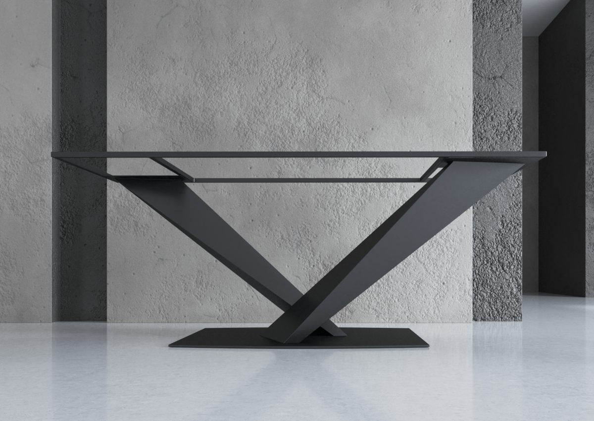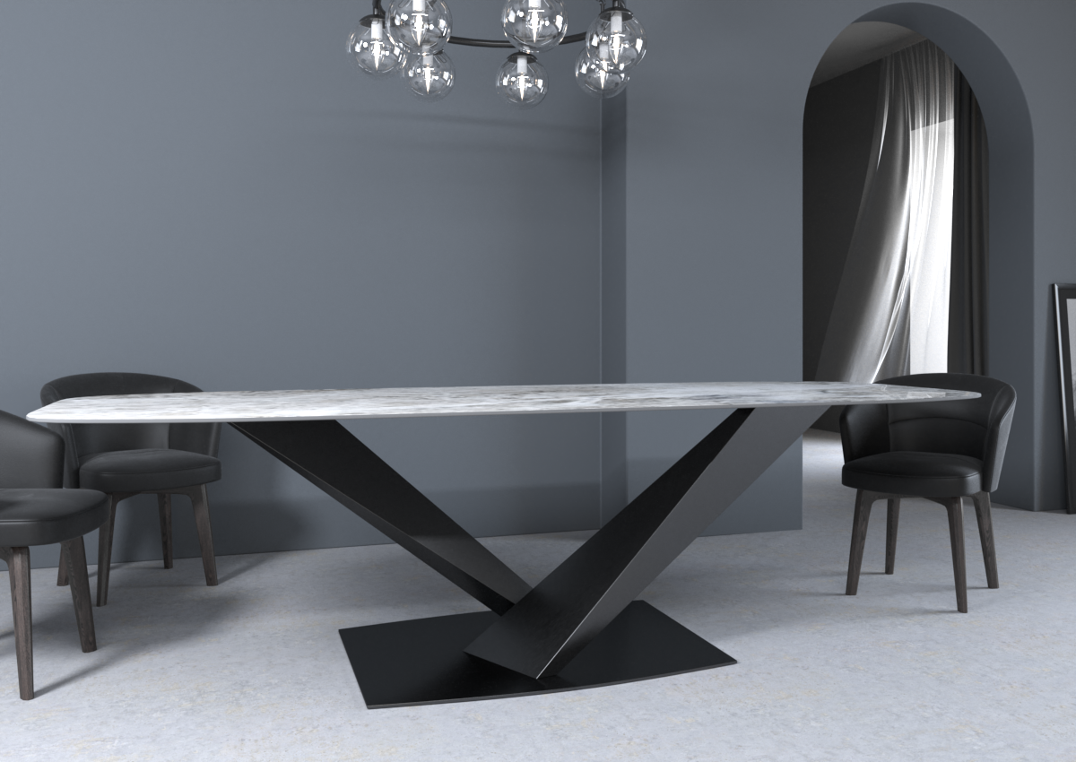 Массивное подстолье удачно сочетается с любой столешницей (МДФ+шпон, керамогранит, массив (дуб), компакт плита) от 2000x1000 мм.
