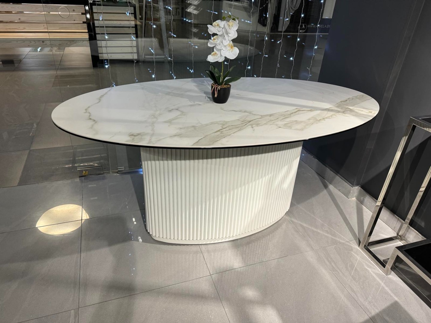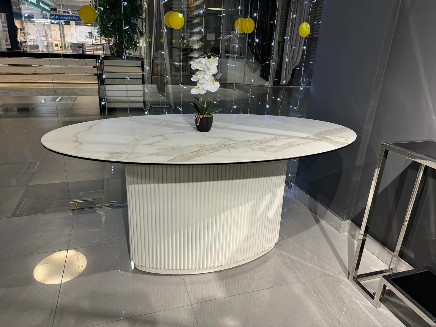 Массивное подстолье удачно сочетается с любой столешницей (МДФ+шпон, керамогранит, массив (дуб), компакт плита) от 1600x800 мм.