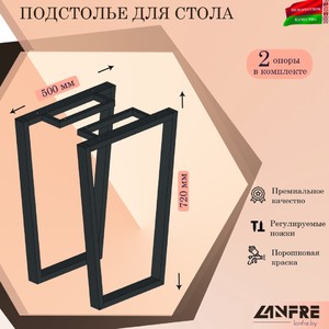 Подстолье изготовлено из профильной трубы 50х25х1,5 мм, покрытие полимерное (порошковое).