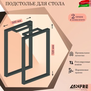 Подстолье изготовлено из профильной трубы 50х25х1,5 мм, покрытие полимерное (порошковое).