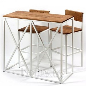 Барная стойка лофт со стульями - оригинальное решение для обеденной зоны. Необычная форма каркаса сразу привлекает внимание. Хороший вариант для организации обеденной зоны в офисе, кафе, баре или стильной современной кухни.