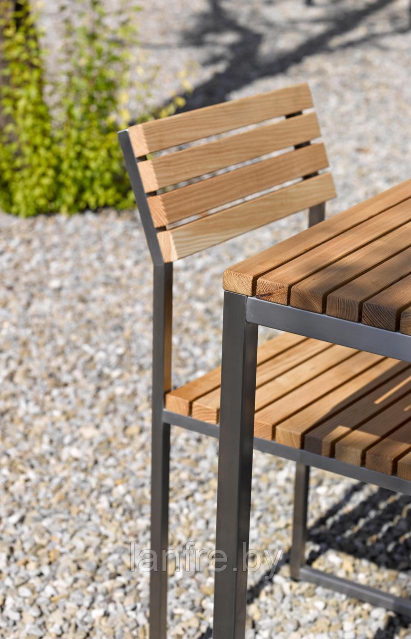 Комплект мебели для дачи PICNIC-12 состоит из двух стульев и обеденного стола. Металлическая основа изготовлена из профильной трубы, сиденье и столешница - из деревянных брусьев. Деревянные поверхности подвергаются тщательной обработке и покрываются защитным слоем, предотвращающим порчу древесины. Такая мебель долговечна и рассчитана на активное использование.