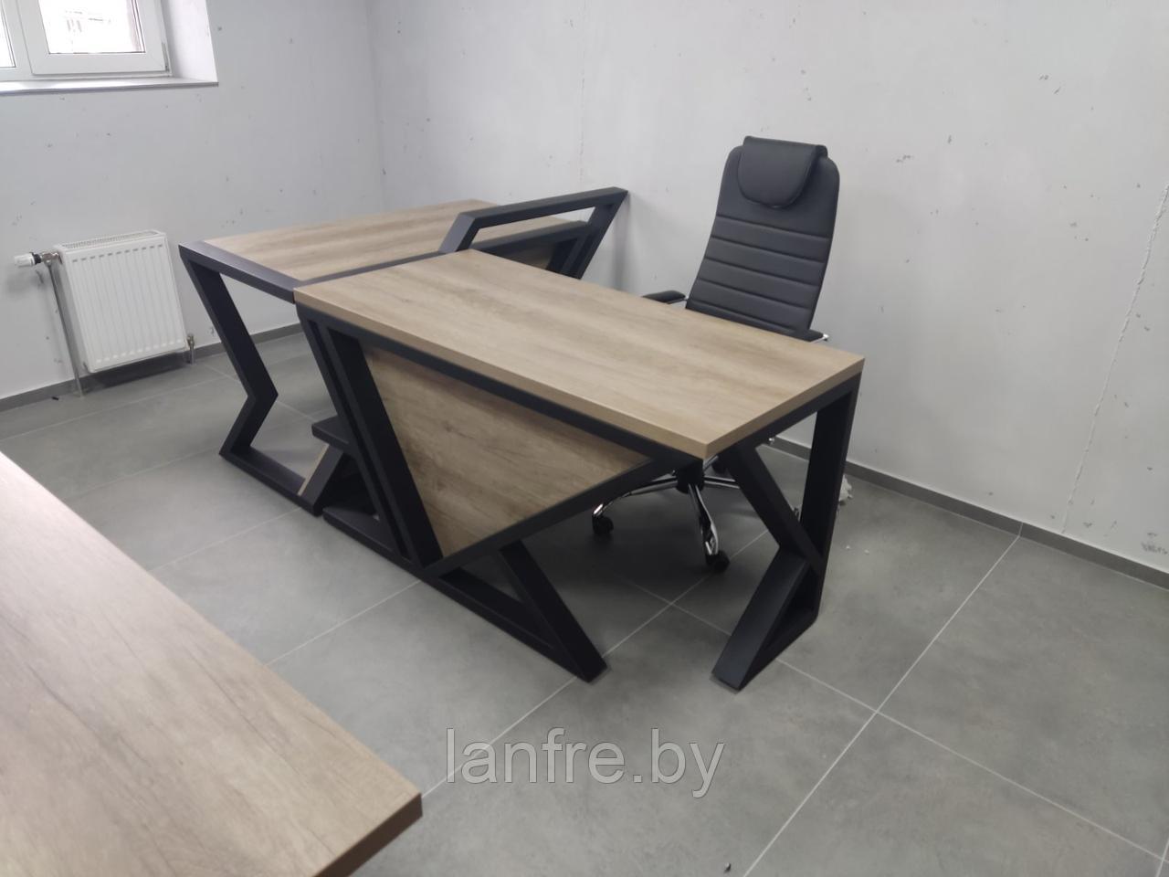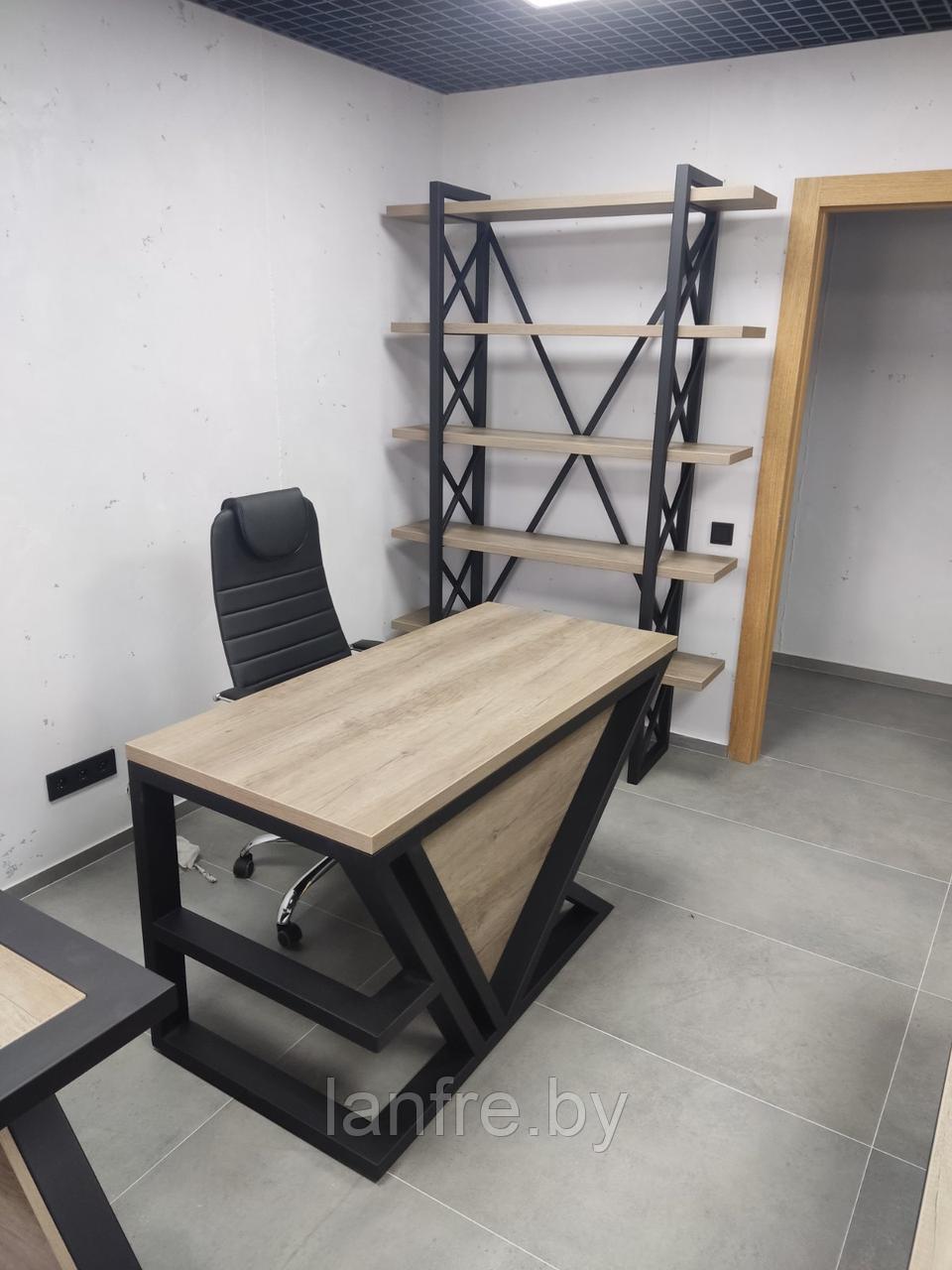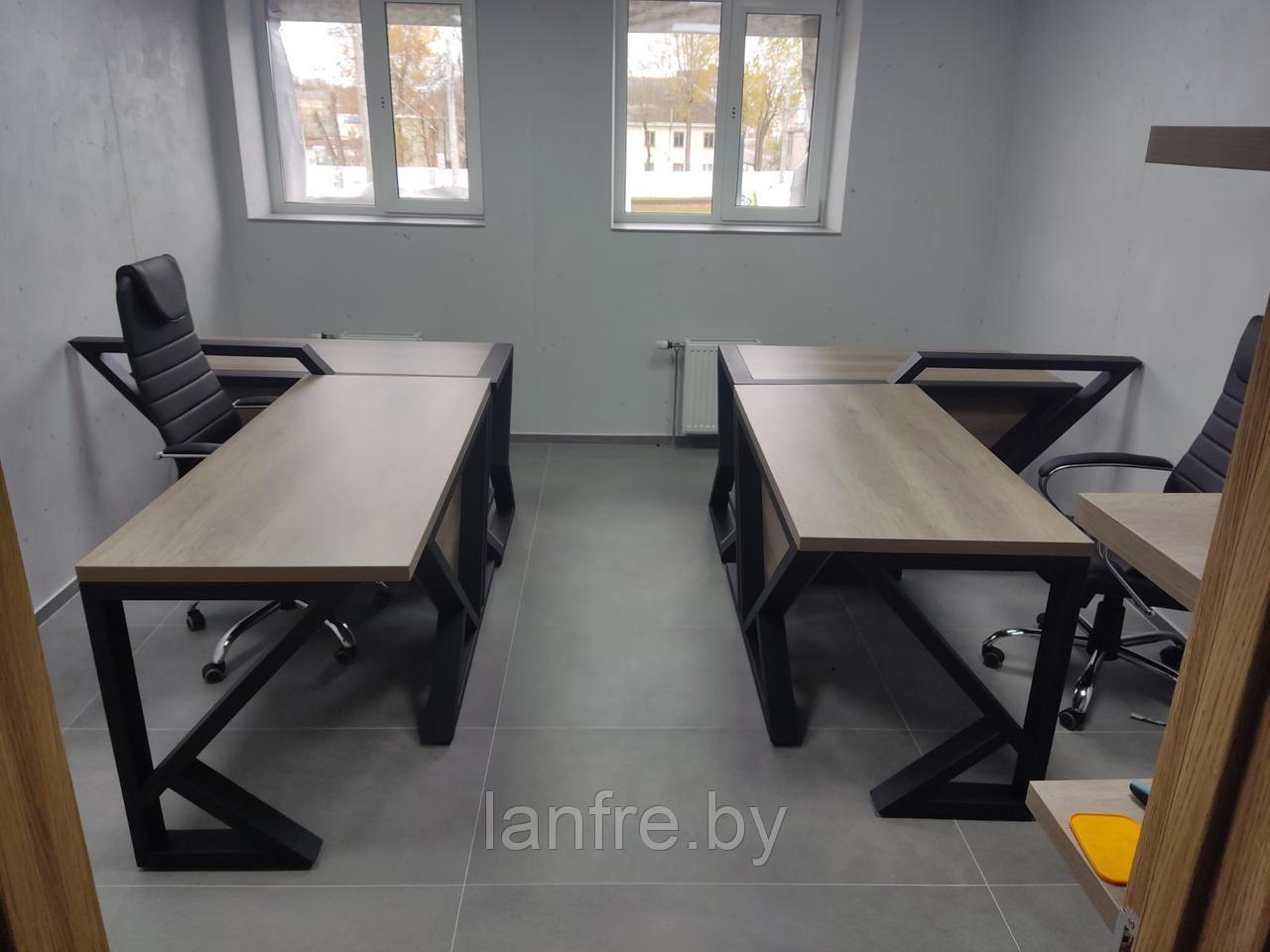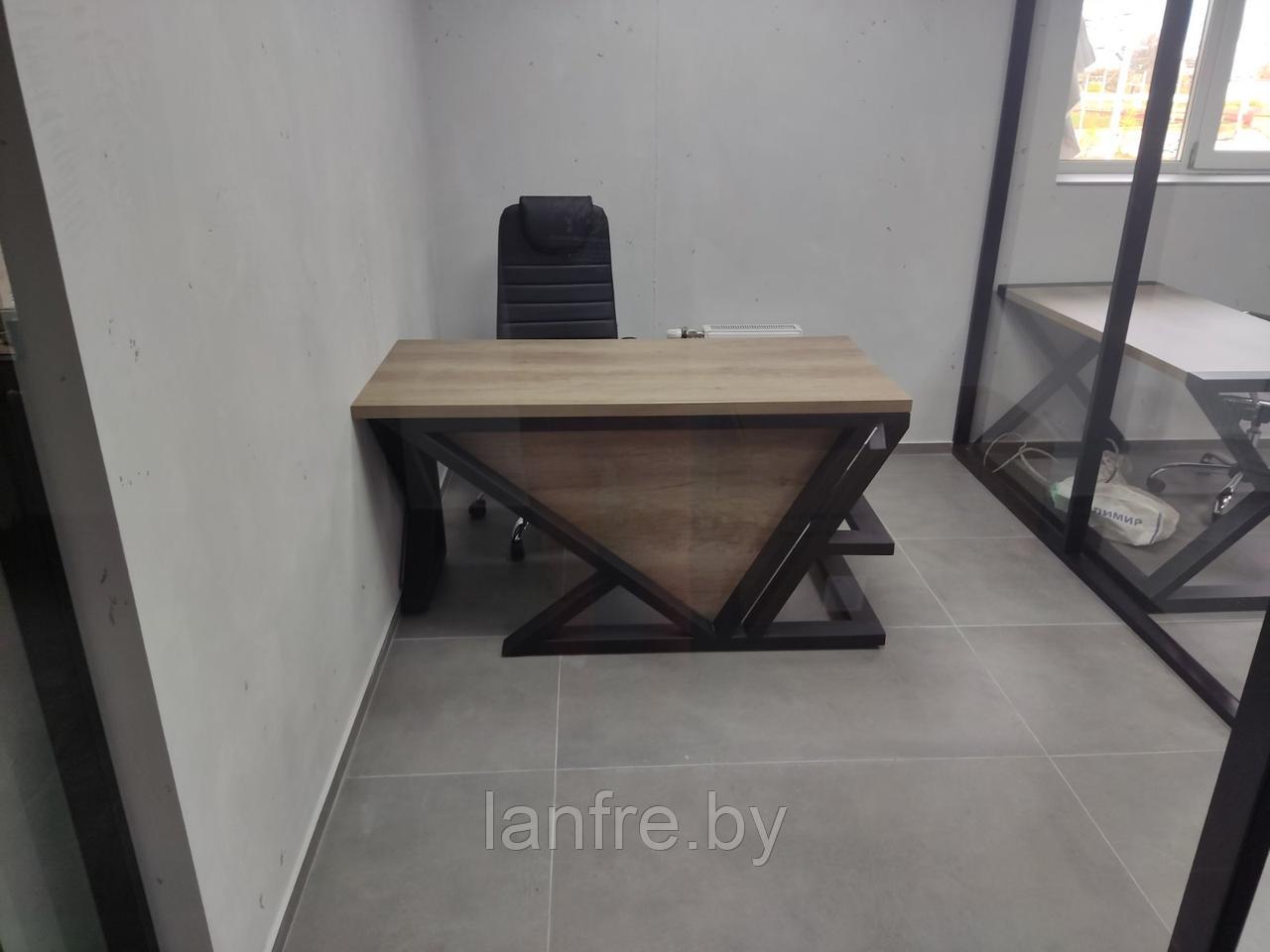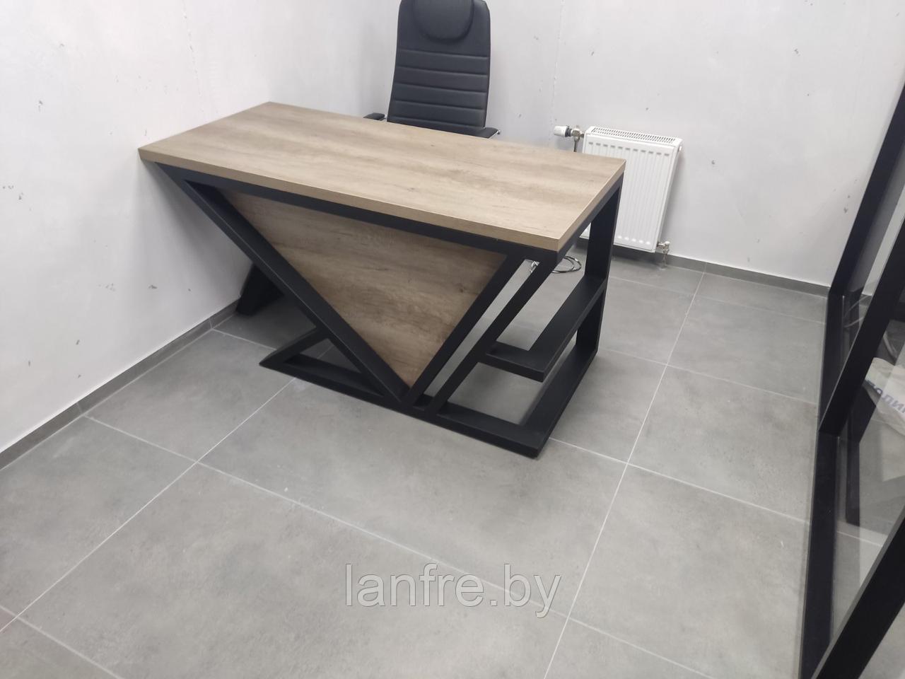 Современный офисный стол из металла. Стол изготовлен и собран вручную, с тщательным вниманием к деталям. Основание стола выполнено в современном стиле, но при этом в нем присутствует умеренная строгость. Такая модель выглядит интеллигентно и сможет найти себе место в обстановке лаконичных рабочих пространств.
