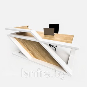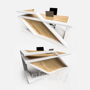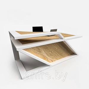 Офисный стол в белом цвете из металла. Эта модель отличается нестандартным внешним видом. Основание стола представляет собой оригинальное дизайнерское решение: сочетание дерева с металлическими профилями - это одновременно и современно, и надежно. Белый цвет, геометрические формы и острые углы - придают всей композиции легкость и динамику. Такая модель сможет найти себе место в обстановке самых необычных рабочих пространств.