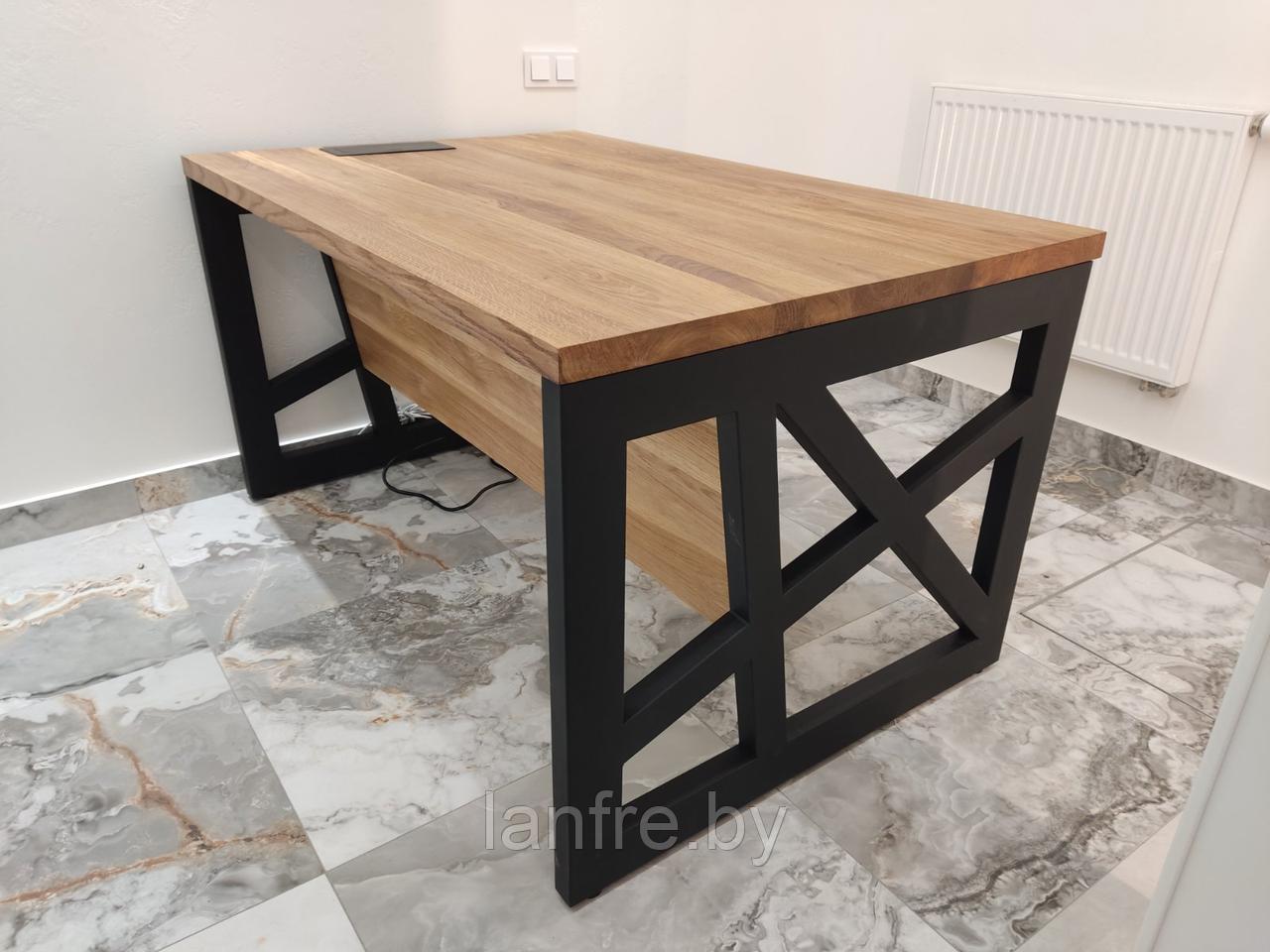 Современный офисный стол DIRECTOR является современным и комфортным для работы за счет увеличенной рабочей зоны. Качественные материалы, ручная работа и внимание к деталям делает этот стол представительным и заслуживающим восхищения. Оригинальное массивное металлическое основание стола, геометричные формы и ломаные линии придают всей композиции глубину и динамику.
